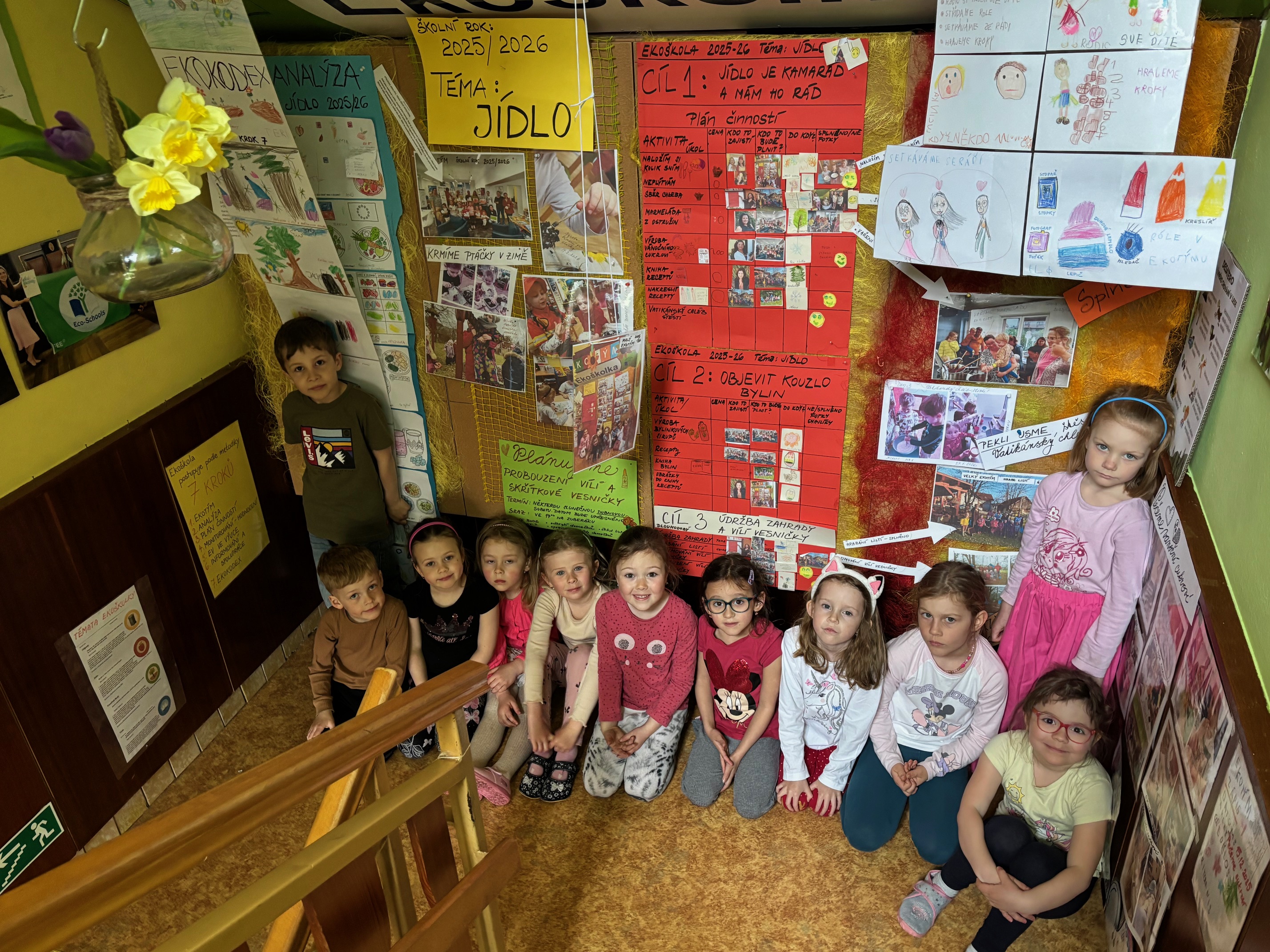 Dne 14.4.2026 proběhl v mateřské škole audit na obhajobu titulu EKOŠKOLA. Titul jsme obhajovali již popáté. Děti z ekotýmu podaly neskutečný výkon.Stály u ekonástěnky a popisovaly co na ní je, co dělaly a jak se jim to povedlo. Z jejich výroků, které by se daly označit jako perly doslova padala paní učitelce Pavlíně i paním auditorkám brada. Všichni jsme se náramně pobavili. Jmenovitě děkujeme: Terezce, Lucince, Markétce,Vendulce, Valince, Kristýnce, Anežce, Elišce P., Alžbětce F., Jáchymkovi a Mikymu. Tyto děti nám obhájily titul ekoškola do roku 2029. Dokázaly vyjmenovat 7 kroků ekoškoly, popsaly analýzu, plán činností, ekokodex, pyšnily se svými obrázky a podávaly opravdu barvitá vysvětlení a definice.