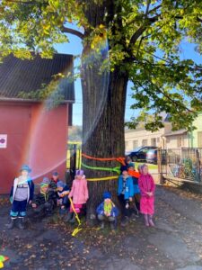 V měsíci říjnu jsme se rozhodli myslet trochu více na naši planetu Zemi. Nejprve jsme 20.října oslavili DEN STROMŮ. Ověnčili jsme stromy na naší zahradě a v centru naší obce barvenými mašlemi, objali je a zazpívali jim. Také jsme v rámci ekoškoly přijali VÝZVU OBYČEJNÉHO HRDINSTVÍ, do které se mohl zpojit kdokoliv z rodiny. Výzva spočívala v tom že budeme vědomě šetřit vodou při čištění zubů, pouřívat vlastní nákupní tašky, zasadíme nějakoý strom či kytičku, nebudeme jezdit autem a jiné. Naši misi tak trochu narušil nouzový stav, takže akce byla prodloužena, o výsledcích budeme informovat v dalším čísle zpravodaje.
