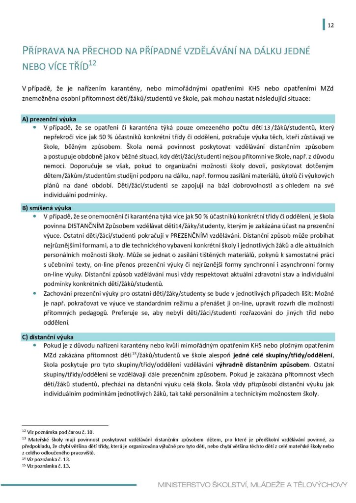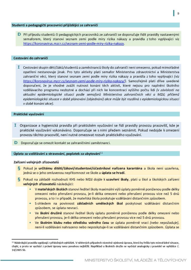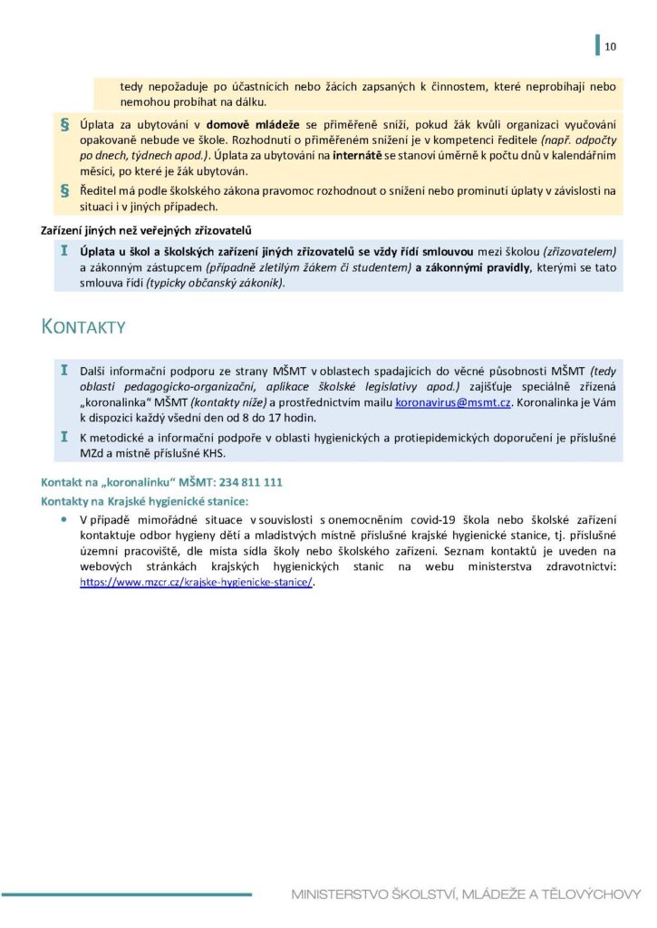 PROVOZ ŠKOL A ŠKOLSKÝCH ZAŘÍZENÍ VE ŠKOLNÍM ROCE 2020/2021 VZHLEDEM KE COVID-19