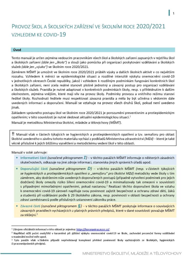Manuál k provozu škol ve školním roce 2020/2021