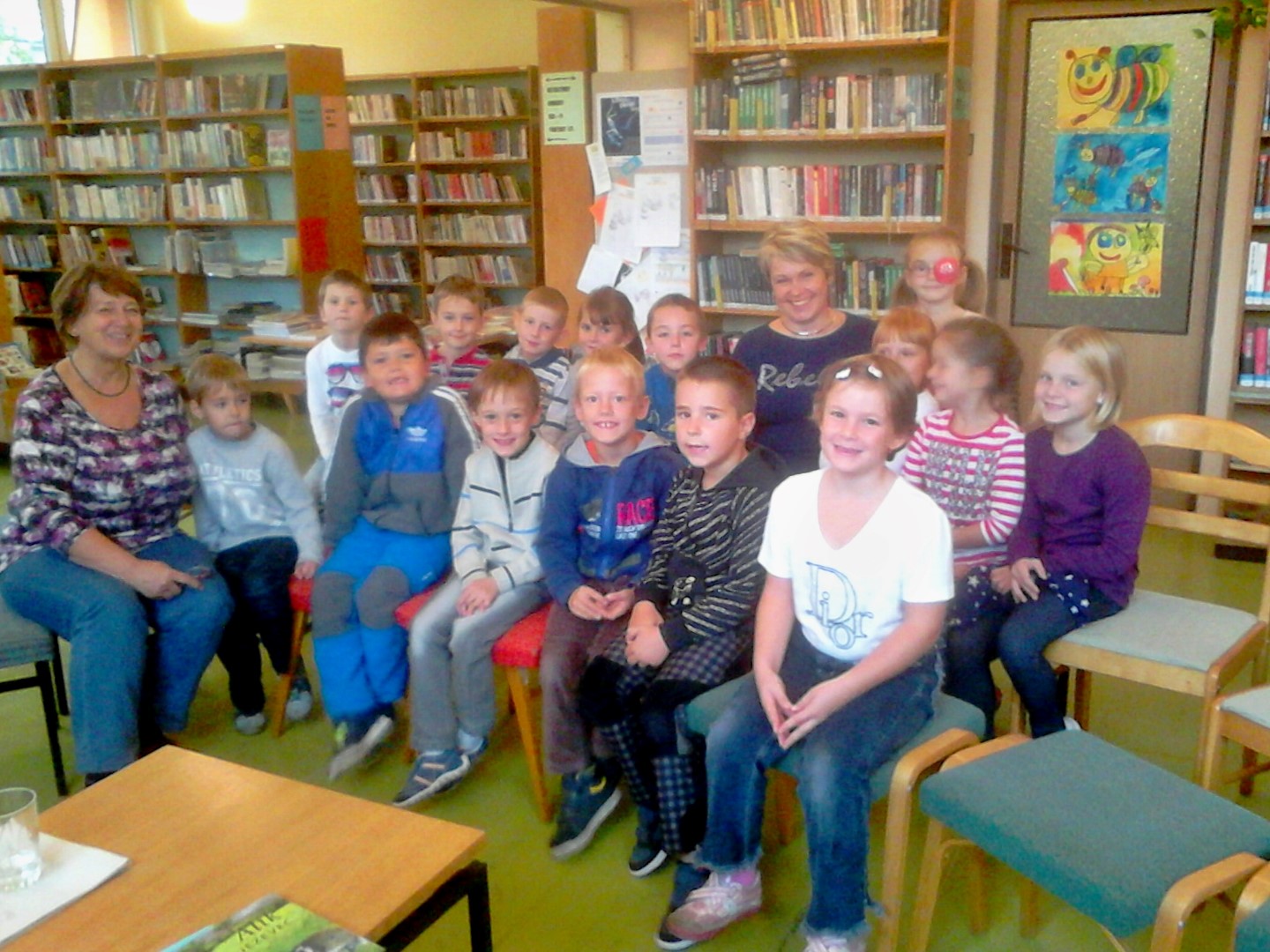 V pátek 9. října 2015 byli prvňáčci pozváni paní knihovnicí Zajícovou do místní knihovny, aby se zúčastnili Čtenářského maratonu, který se konal v rámci Týdne knihoven. Čekalo je příjemné přkvapení, protože jim pohádkovou knížku Dráček Mráček přišla předčítat paní místostarostka Dudová. Dětem příjemně strávená hodinka čtení a povídání rychle uběhla a už se těší na další návštěvu knihovny.
