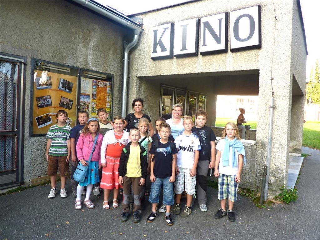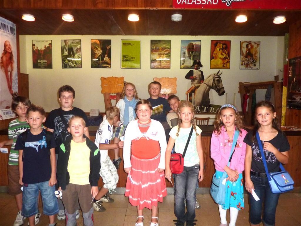 V pondělí 12. září jsme byli celá naše 4. třída s paní učitelkou Hladkou v kině Panorama v Rožnově p.Radhoštěm na hudební pohádce, která se jmenovala „V peřině“. Bylo to naše první setkání s paní učitelkou mimo školu, protože k nám nastoupila teprve 1. září a je u nás nová. Proto jsme se do kina všichni moc těšili. Dobrodružství bylo již v tom, že jsme necestovali klasickým způsobem – autobusem, ale vezla nás tři auta a skoro všichni chtěli jet s paní učitelkou. Promítání začalo v 18 hodin. Příběh vyprávěl o rodině, která čistila peřiny od zlých snů. Učinkovalo v něm mnoho známých tváří, např. L.Bílá, K Roden, E.Balcerová, J Mádl.. Hodně se tam také zpívalo, občas jsme se i trochu báli, ale nakonec všechno dobře dopadlo. Po skončení kina jsme odjeli domů a před školou jsme si všichni popřáli hezkou, dobrou noc , bez zlých snů. Už teď se těšíme na další představení, které navštívíme s naší třídou.