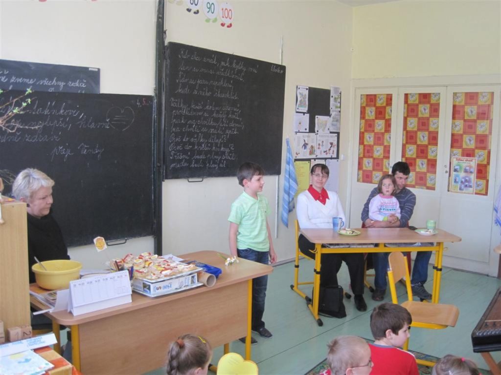 pozvánku ve VV. Také druhá třída slavila. Pozvala si však i tatínky, protože na Den otců se u nás zapomíná. Přípravy začaly již několik dnů předem. Každé dítě si připravilo hezkou básničku, napsalo pozvánku a v pátek 6.5. vše vypuklo. Dopoledne jsme ještě připravili chlebíčky a v 15hod. zahájili program, který nám zpestřily i některé děti hrou na kytaru, cimbál a flétny. K dobré pohodě při čaji a kávě a chlebíčcích přispěla i babička M. Dobeše, která upekla výborný metrový řez. Závěrem bych chtěla poděkovat pí. Trčkové za pomoc s úklidem.