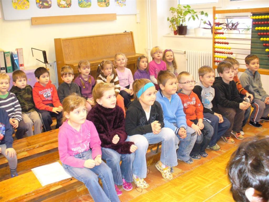 Pátek 7. 1. 2011 byl pro děti z 1. třídy plný očekávání. Na tento den totiž byly pozvány na návštěvu děti nejen z MŠ Vidče, ale i MŠ Střítež. Od rána se svých mladších kamarádů naši žáčci nemohli dočkat. A proč vlastně ne? Chtěli jim ukázat, co všechno se za 4 měsíce pilné práce ve škole už naučili. Myslím si, že se jim to docela povedlo, děti ze Stříteže si také prohlédly naši školu, tělocvičnu, družinu.