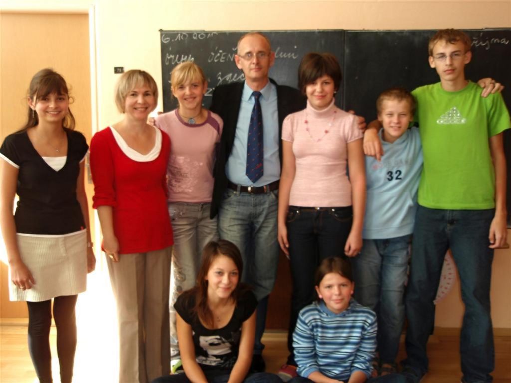Od tohoto školního roku se žáci osmého ročníku rozhodli učit ruskému jazyku. Jsou velmi šikovní, učenliví a pilní. Své jazykové „začátky“ si mohli procvičit minulý týden, kdy naše škola hostila učitele z Belgie, Estonska a Polska. Do hodiny ruského jazyka ve středu 6.1O.2010 zavítali naši hosté z Polska a naši žáci si tak mohli „popovídat“ rusky i s někým jiným než svojí učitelkou. Byli velmi komunikativní i přes počáteční ostych.