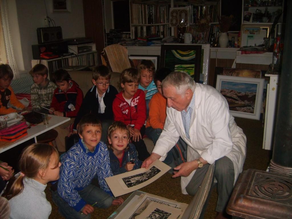 Dne 27. 10. 2009 se třetí třída vydala za akademickým malířem p. L. Majerem do ateliéru na Hutisko-Solanec. Co nás čekalo? Více než hodinové vyprávění mistra malíře nad jeho obrazy, seznámení s různými druhy technik, odpovědi na otázky dětí v jeho útulné pracovně. A to není zdaleka vše. Děti stejně jako já či pí. B. Drdová budeme vzpomínat na pohostinnost tohoto umělce. Co děti zaujalo nejvíce? Když mohly samy vytvořit názvy pro jednotlivá umělecká díla, nad nimiž i samotný malíř žasl.
