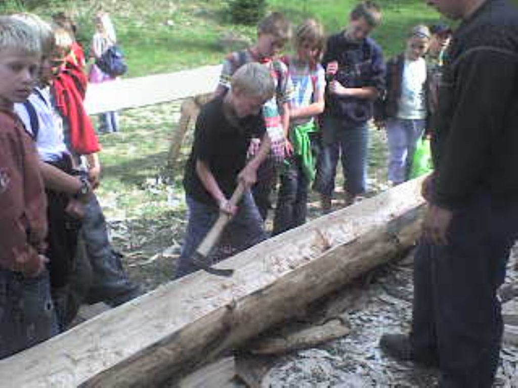 Tentokrát jsme mohli vidět, s jakými hračkami si hrávali naši prarodiče, zajímavé bylo stahování dřeva, výroba hrábí, kol, dřevěného náčiní – obzvláště, když si vše mohly děti samy vyzkoušet. Snad největší úspěch mělo poutavé vyprávění myslivce o životě lesa s poznáváním listů a seznámení s druhy dřev. Neméně úspěšné pak bylo vlastnoruční vyrábění draků, navlékání dřevěných korálků a výroba dřevěného náčiní. Ani po třech hodinách děti neměly pocit, že by výuka měla končit a jen nerady odcházely na autobus, protože ten nečeká.